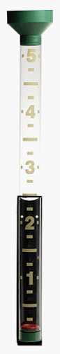 Accurately measures rainfall up to 5" and can be read from a distance of up to 50'. 24" tall and its 1-3/4" tube has brilliant yellow markings with a colored float. 1" of rain raises the float over 4" for easy reading, entry funnel constructed to preventleaves and large debris from entering plastic tube.